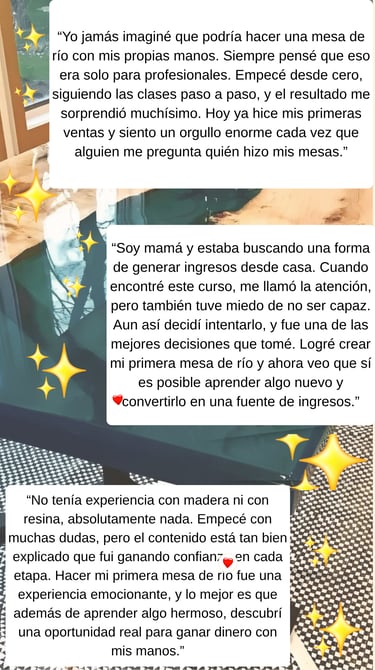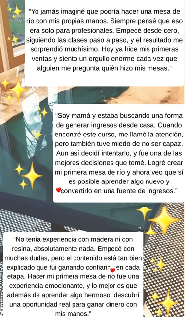 En 7 días podrás tener tu primera mesa terminada. Sistema completo con estrategias de venta incluidas.
